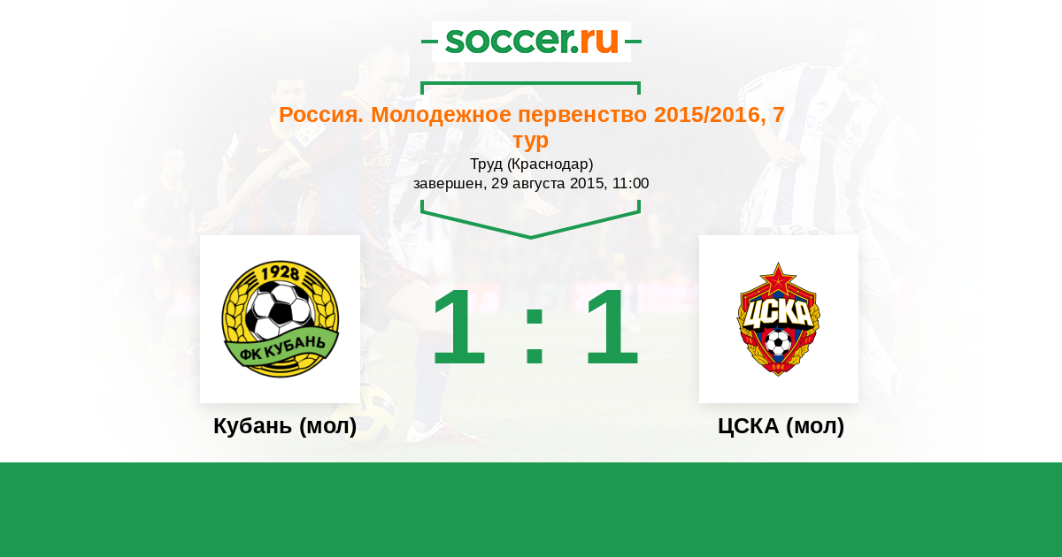 Кубань (мол) - ЦСКА (мол): обзор матча 29 августа 2015