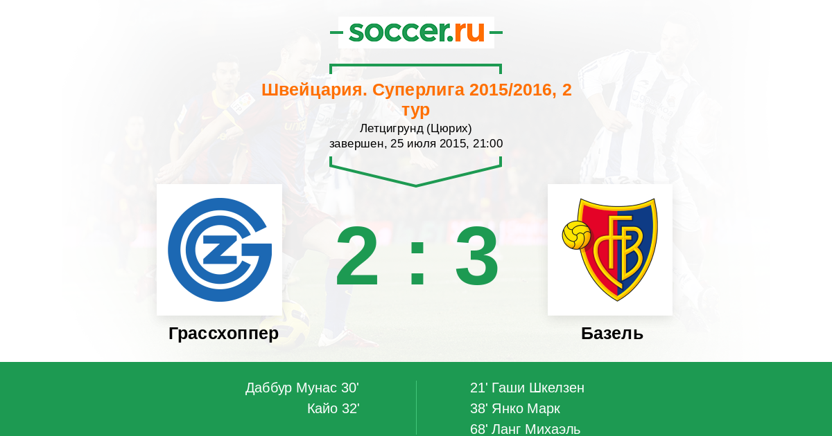 Грассхоппер - Базель: обзор матча 25 июля 2015