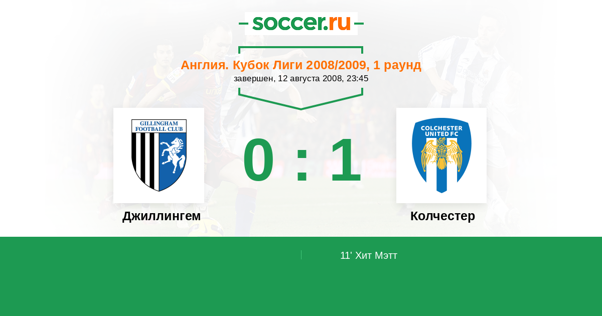 Джиллингем - Колчестер: обзор матча 12 августа 2008