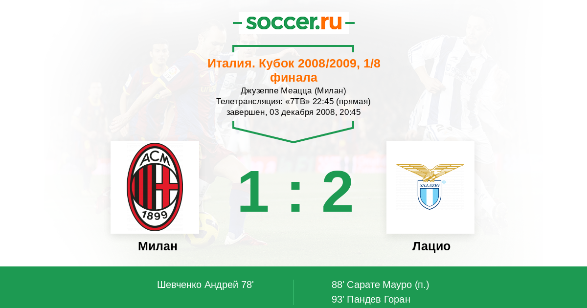 Милан, Джузеппе Меацца Телетрансляция: "7ТВ" 22:45 (прямая)