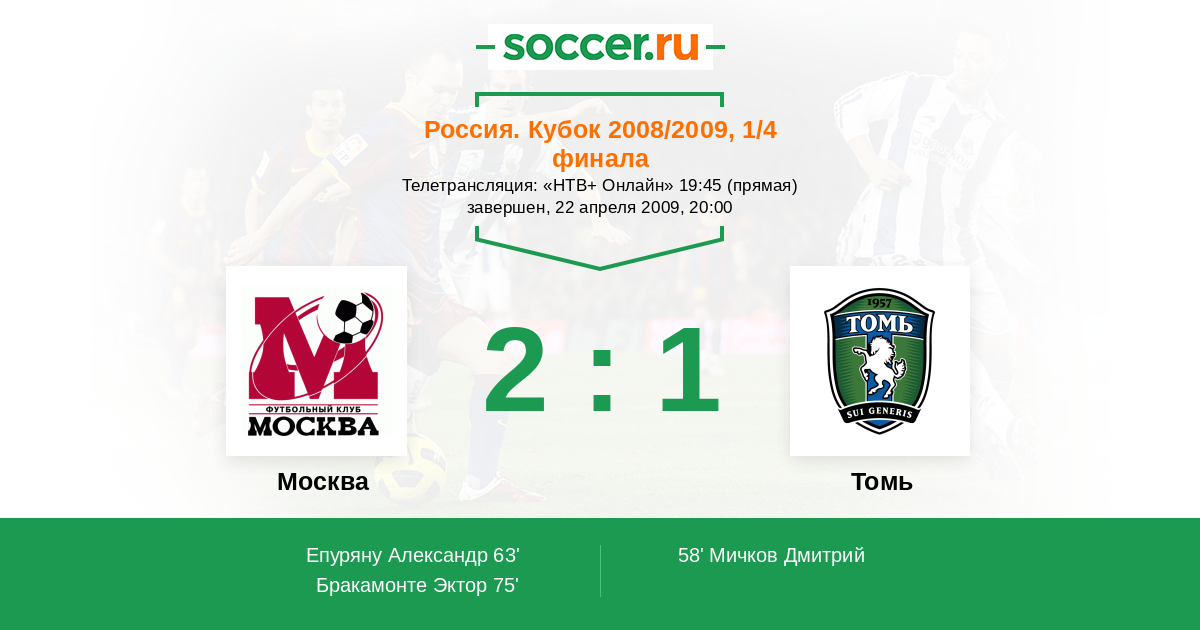 ФК Москва - Томь: обзор матча 22 апреля 2009