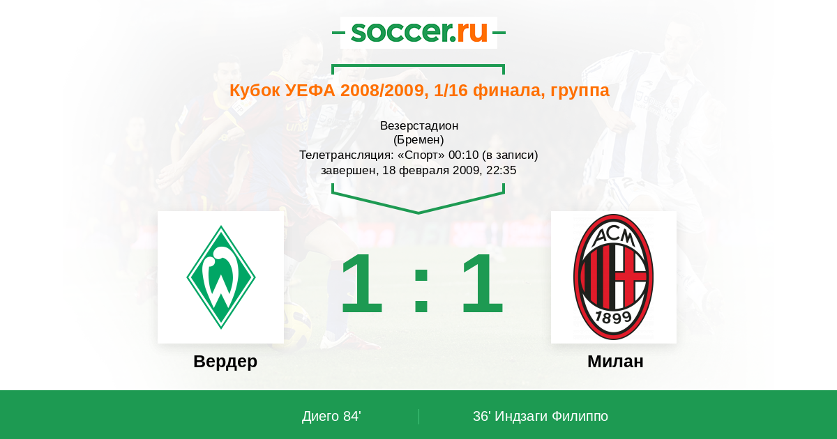 Вердер - Милан: обзор матча 18 февраля 2009