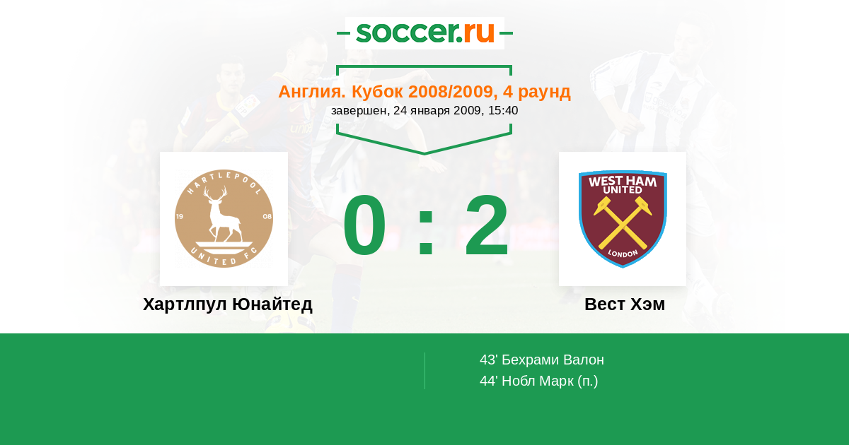 Хартлпул Юнайтед - Вест Хэм: обзор матча 24 января 2009