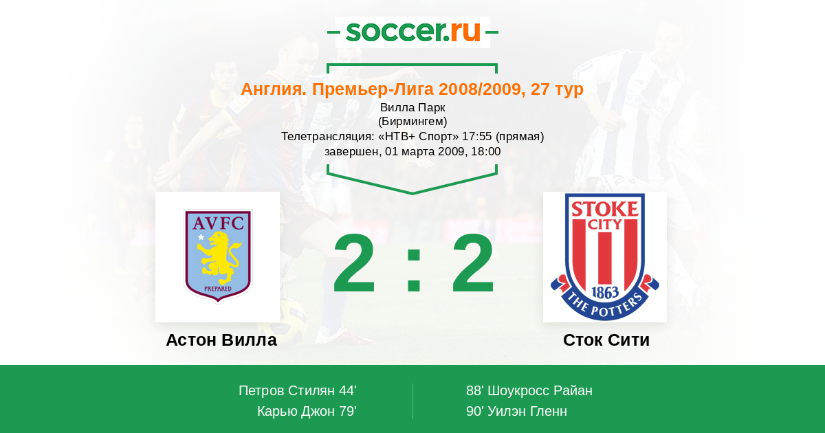 Астон Вилла - Сток Сити: обзор матча 1 марта 2009