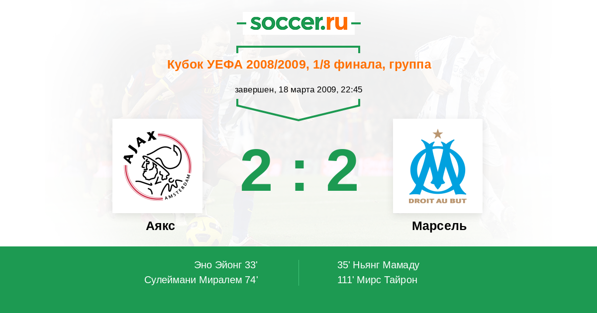 Аякс - Марсель: обзор матча 18 марта 2009
