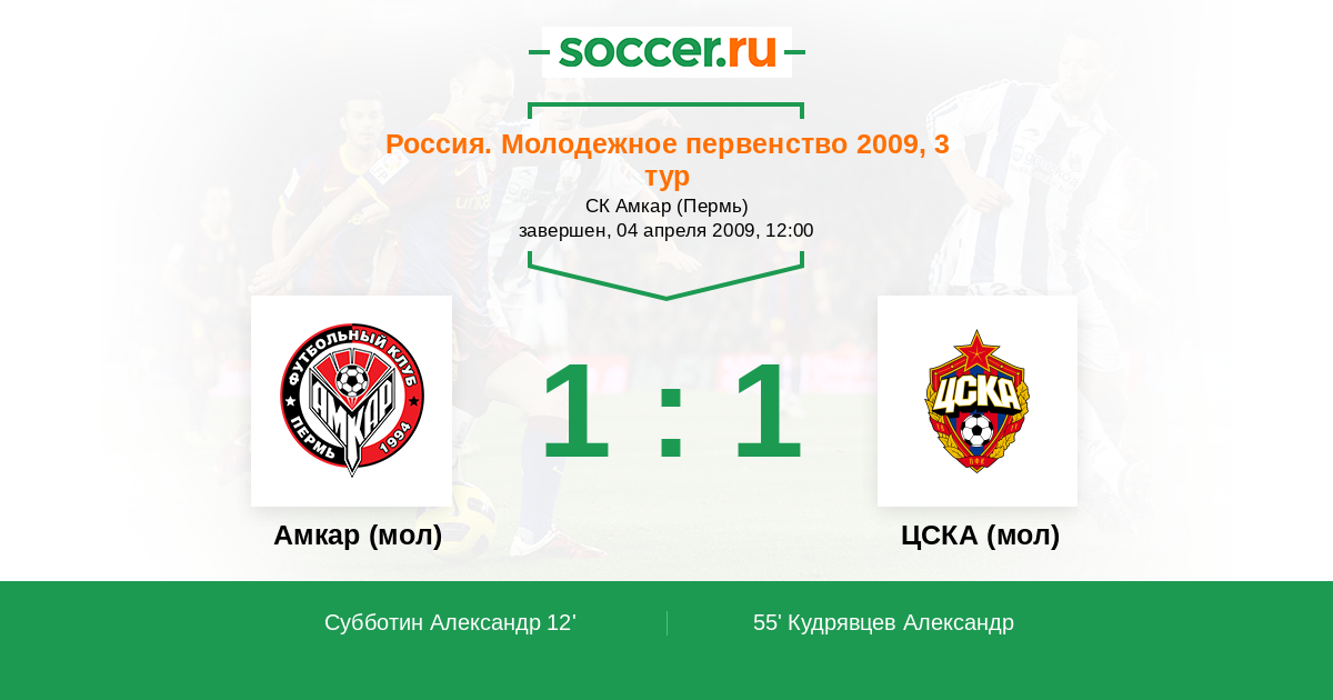 Амкар (мол) - ЦСКА (мол): обзор матча 4 апреля 2009