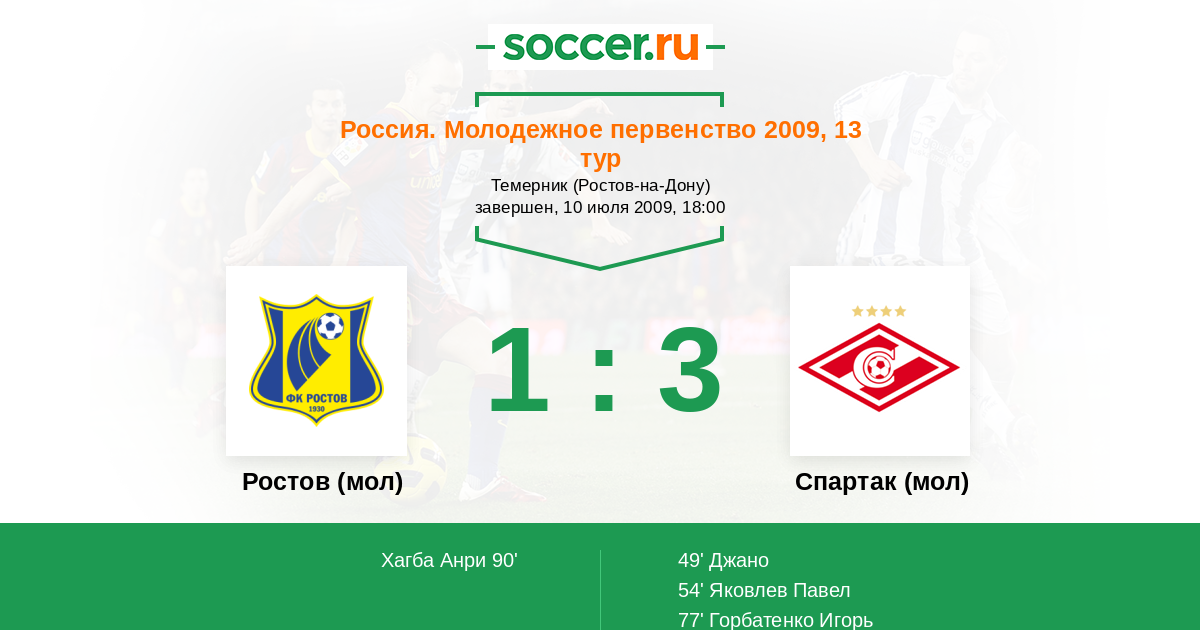 Ростов (мол) - Спартак (мол): обзор матча 10 июля 2009