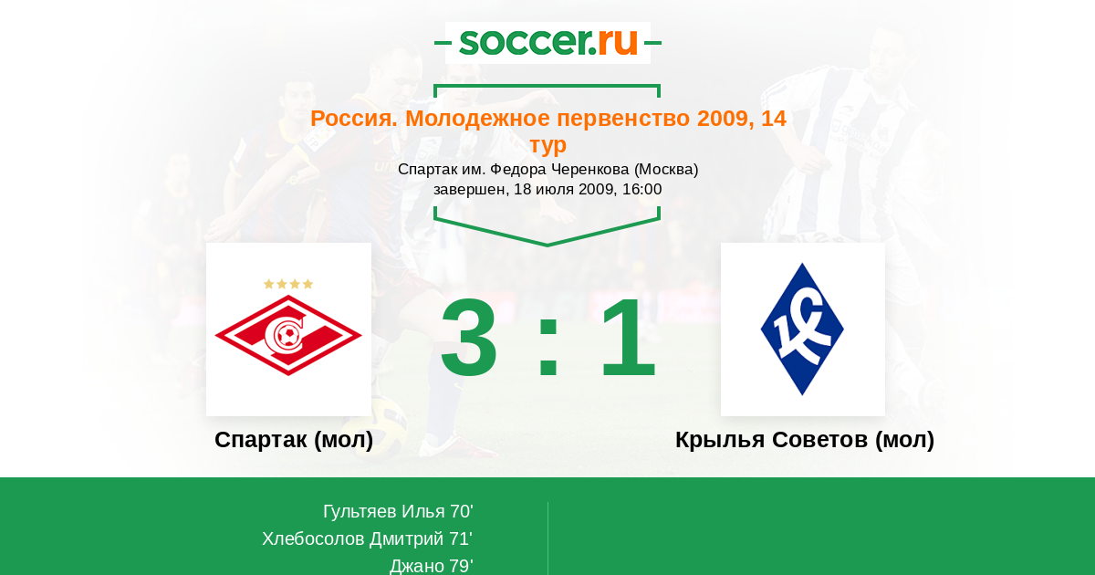 Спартак (мол) - Крылья Советов (мол): обзор матча 18 июля 2009