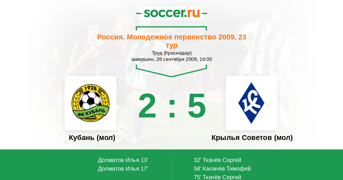 Кубань (мол) - Крылья Советов (мол): обзор матча 26 сентября 2009
