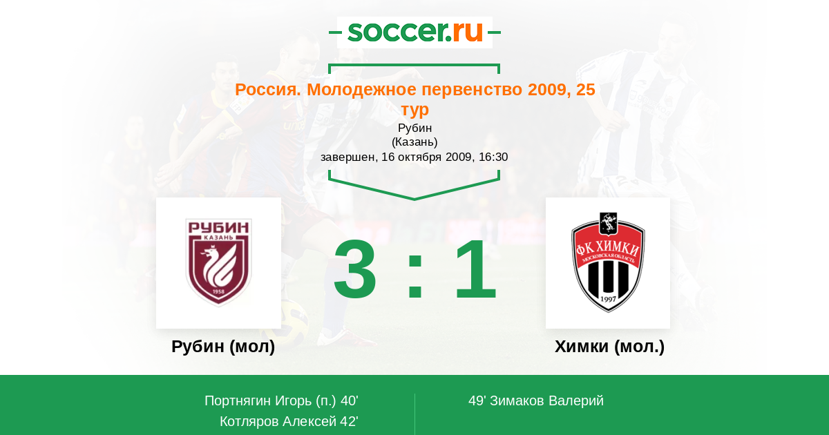 Рубин (мол) - Химки (мол.): обзор матча 16 октября 2009