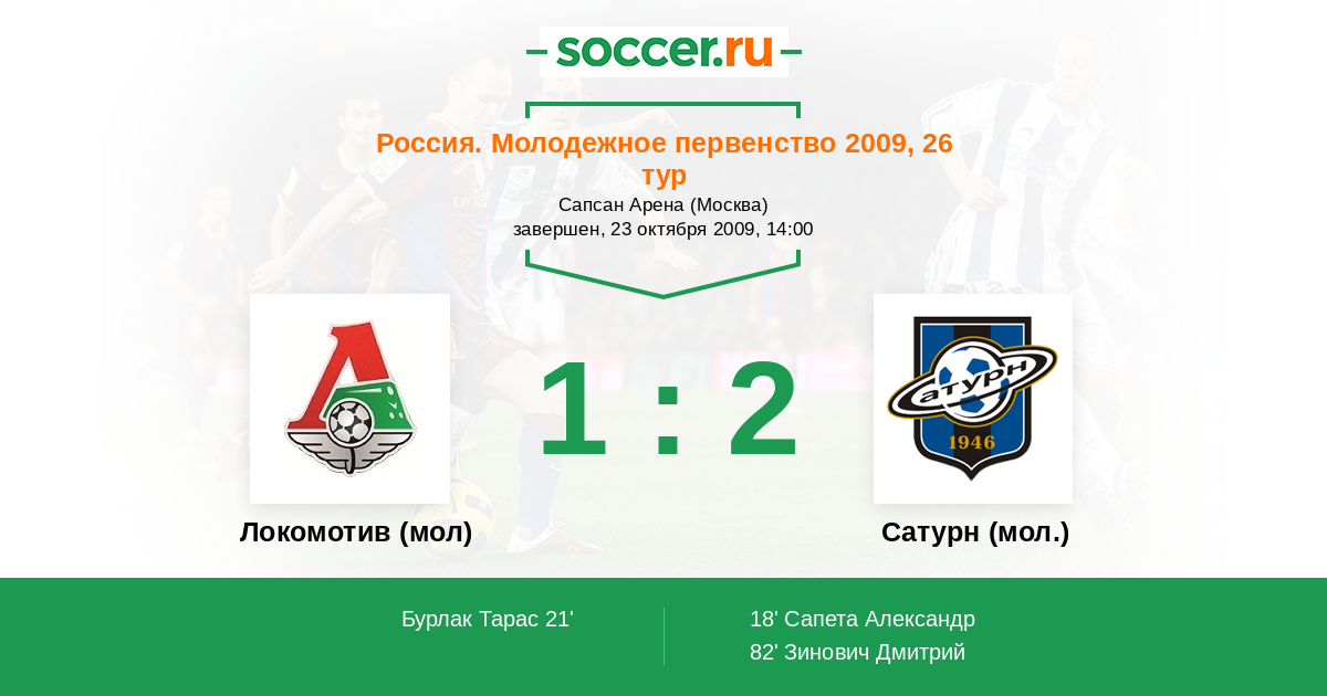 Локомотив (мол) - Сатурн (мол.): обзор матча 23 октября 2009
