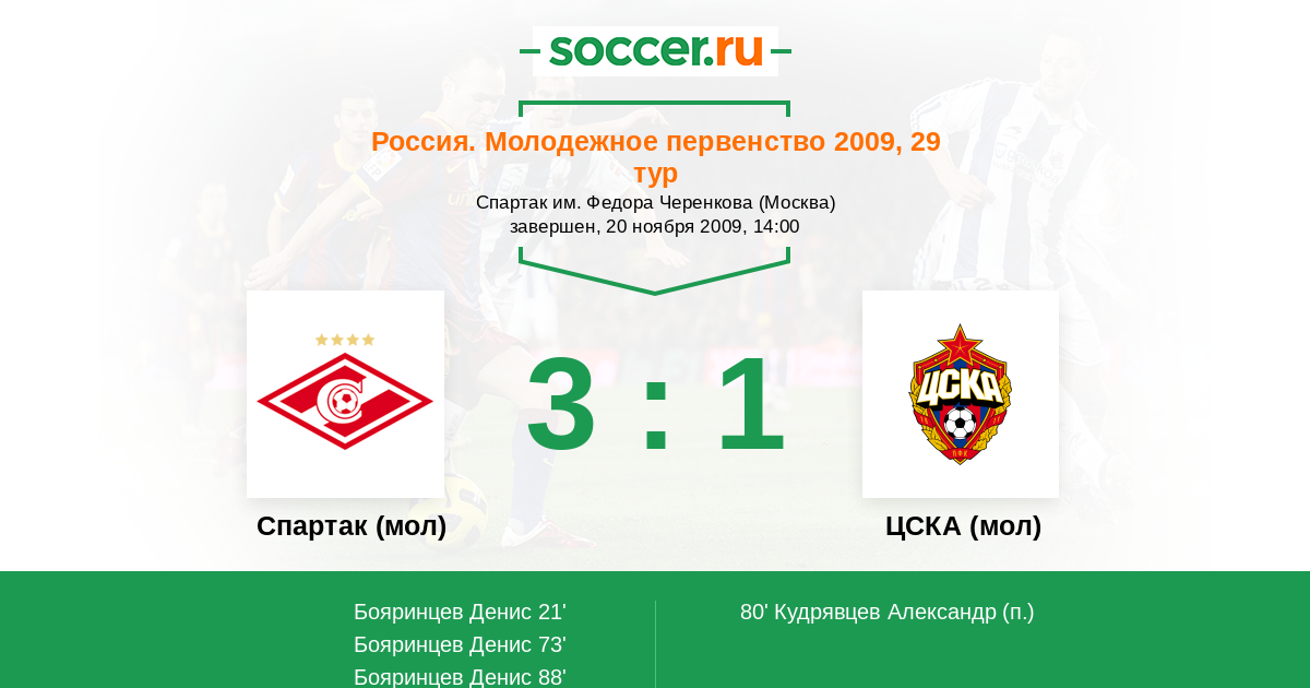 Спартак (мол) - ЦСКА (мол): обзор матча 20 ноября 2009