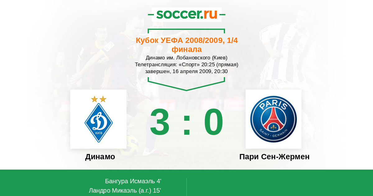 Динамо - Пари Сен-Жермен: обзор матча 16 апреля 2009