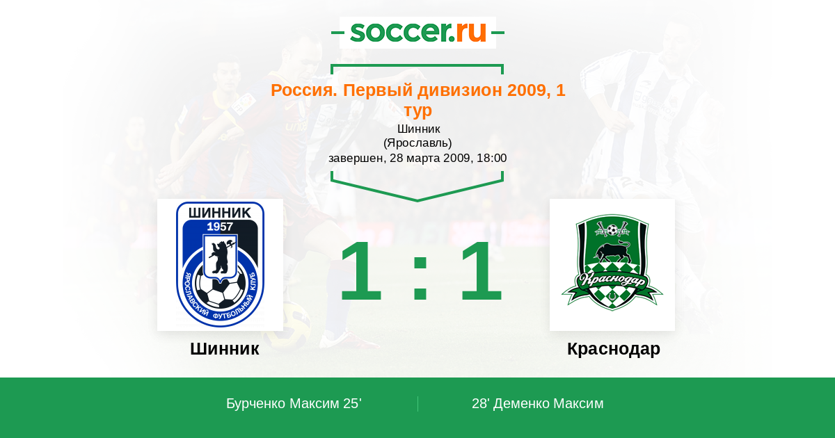 Шинник - Краснодар: обзор матча 28 марта 2009