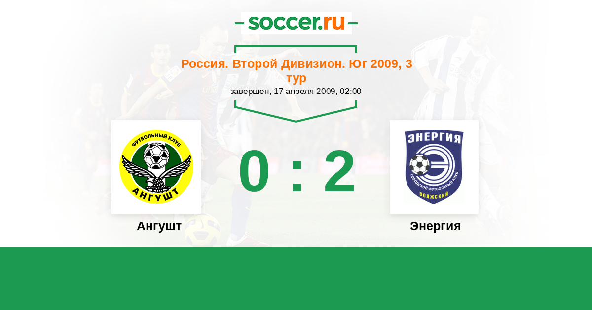 Ангушт - Энергия: обзор матча 17 апреля 2009