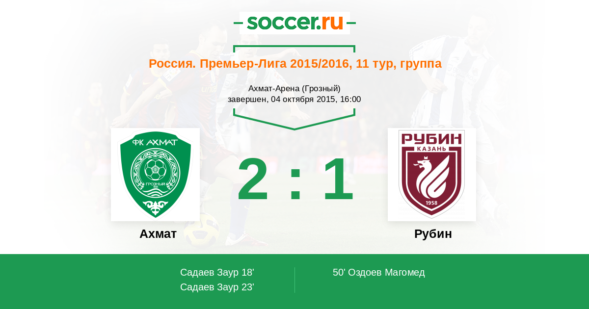 23' ГолЛоготип АхматСадаев Заур (9) - 2:0
