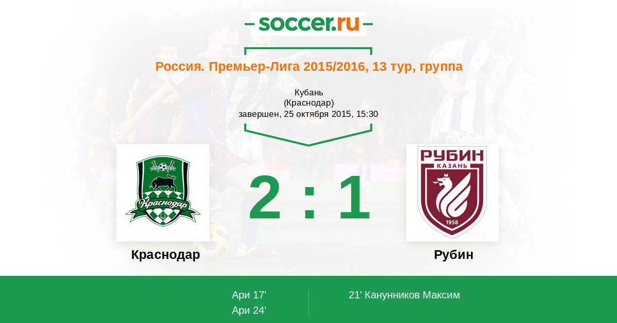 Мы приветствуем Вас на матче 13-го тура российской Премьер-лиги, в котором "Краснодар" принимает "Рубин". Прямую текстовую трансляцию для Вас проведет комментатор Soccer.Ru Антон Сазонтов. Добро пожаловать!