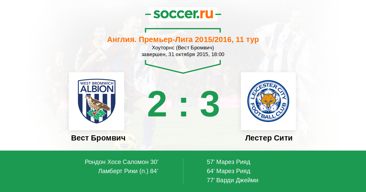 Вест Бромвич - Лестер Сити: обзор матча 31 октября 2015