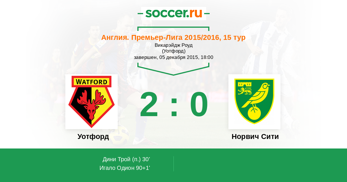Уотфорд - Норвич Сити: обзор матча 5 декабря 2015
