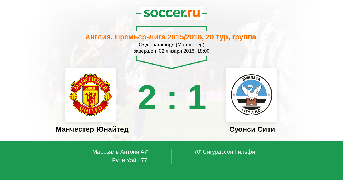 Манчестер Юнайтед - Суонси Сити: обзор матча 2 января 2016
