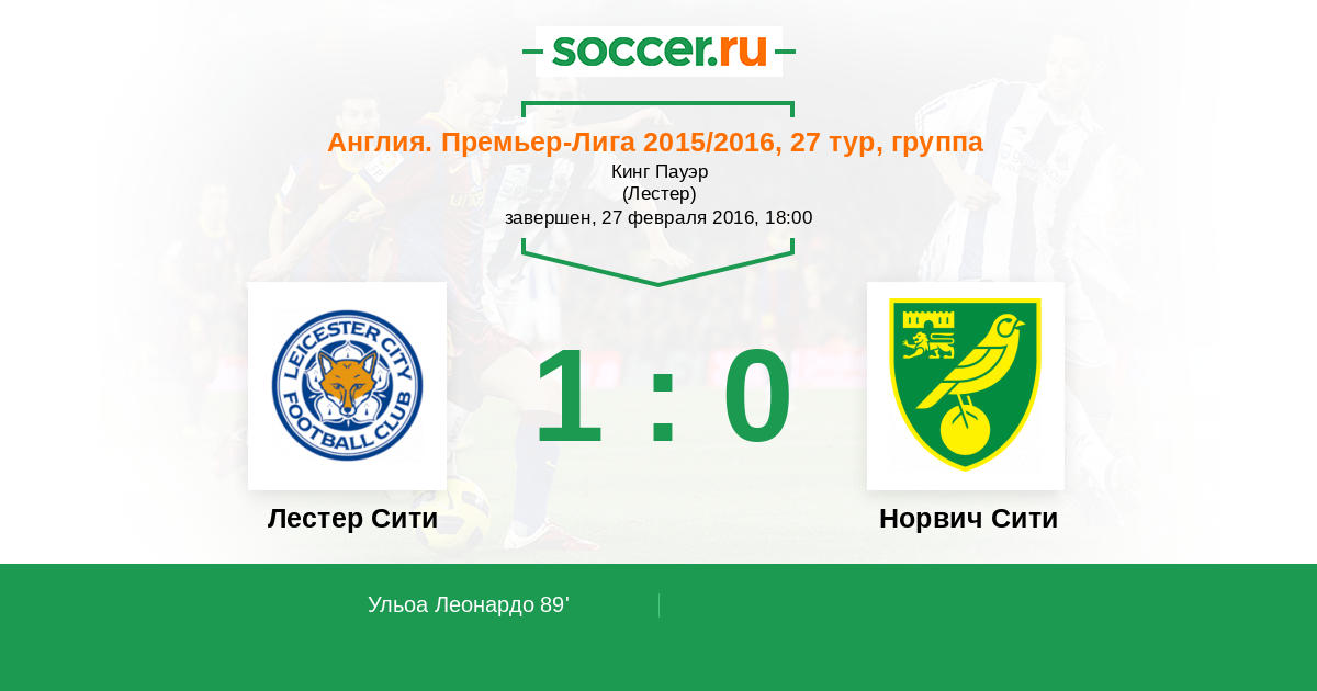 Лестер Сити - Норвич Сити: обзор матча 27 февраля 2016