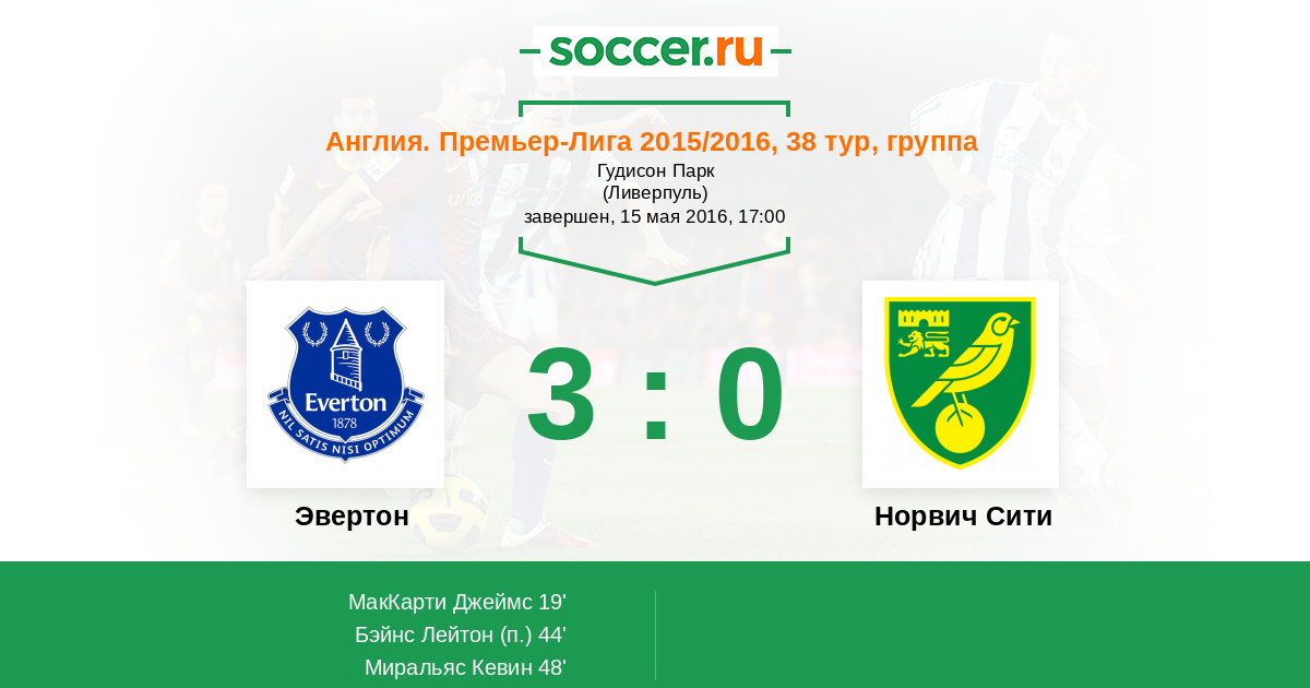 Эвертон - Норвич Сити: обзор матча 15 мая 2016