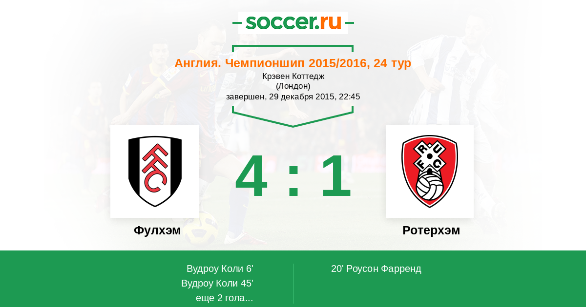 Фулхэм - Ротерхэм: обзор матча 29 декабря 2015