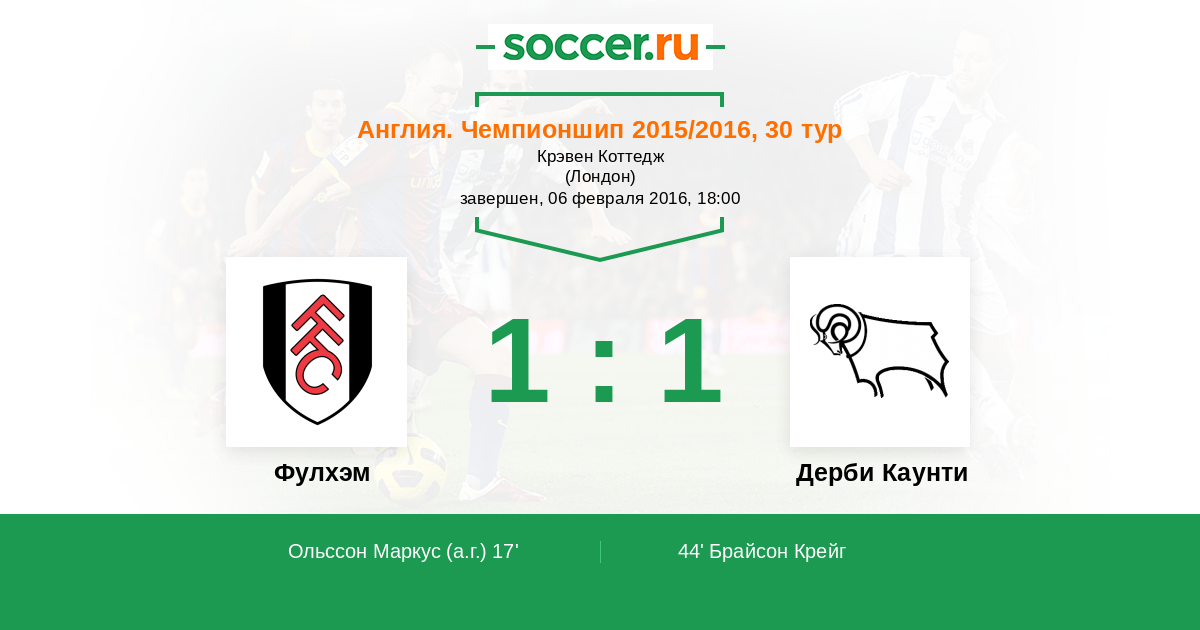 Фулхэм - Дерби Каунти: обзор матча 6 февраля 2016