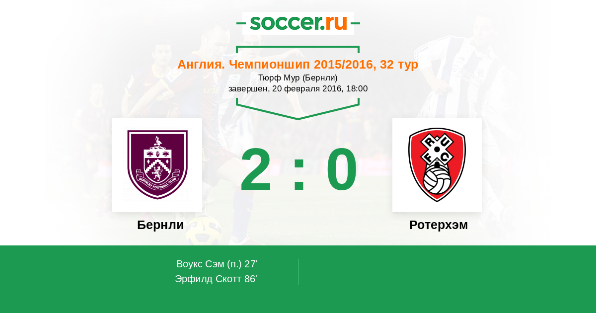 Бернли - Ротерхэм: обзор матча 20 февраля 2016