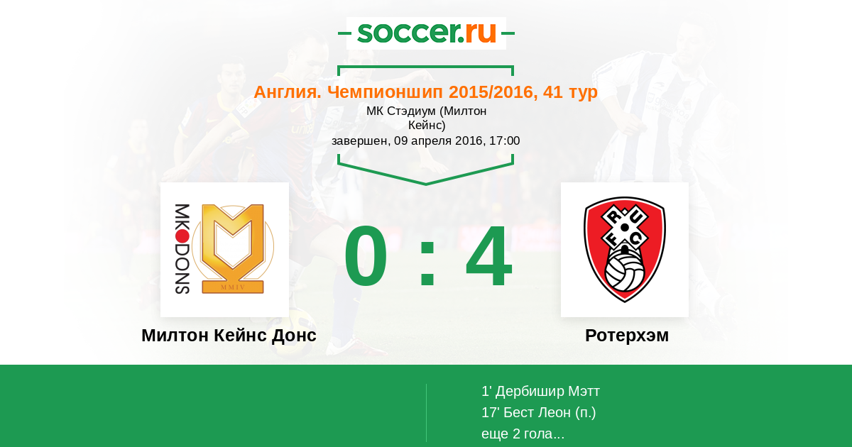 Милтон Кейнс Донс - Ротерхэм: обзор матча 9 апреля 2016