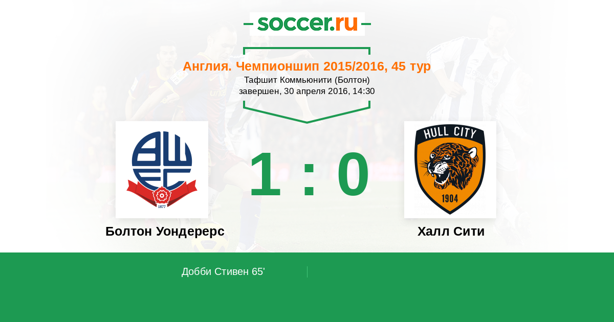 Болтон Уондерерс - Халл Сити: обзор матча 30 апреля 2016