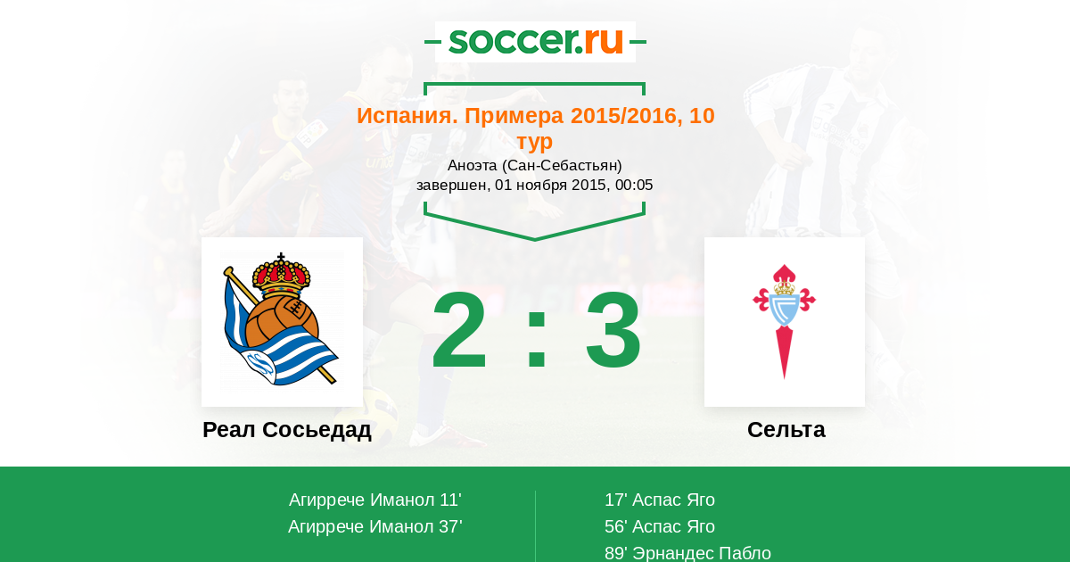 Реал Сосьедад - Сельта: обзор матча 1 ноября 2015