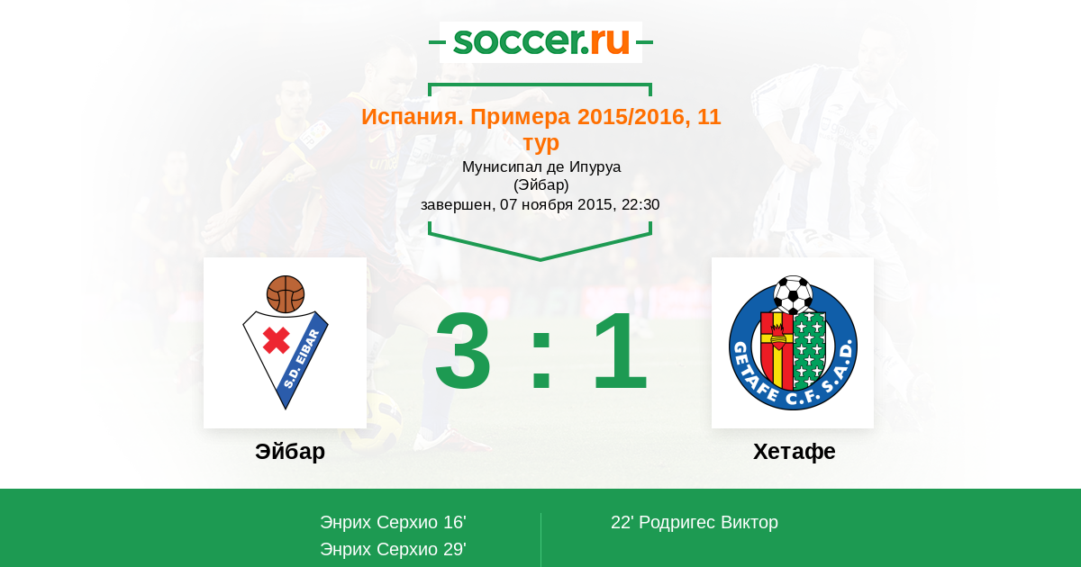 Эйбар - Хетафе: обзор матча 7 ноября 2015