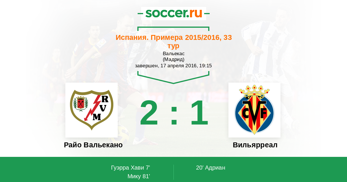 Райо Вальекано - Вильярреал: обзор матча 17 апреля 2016