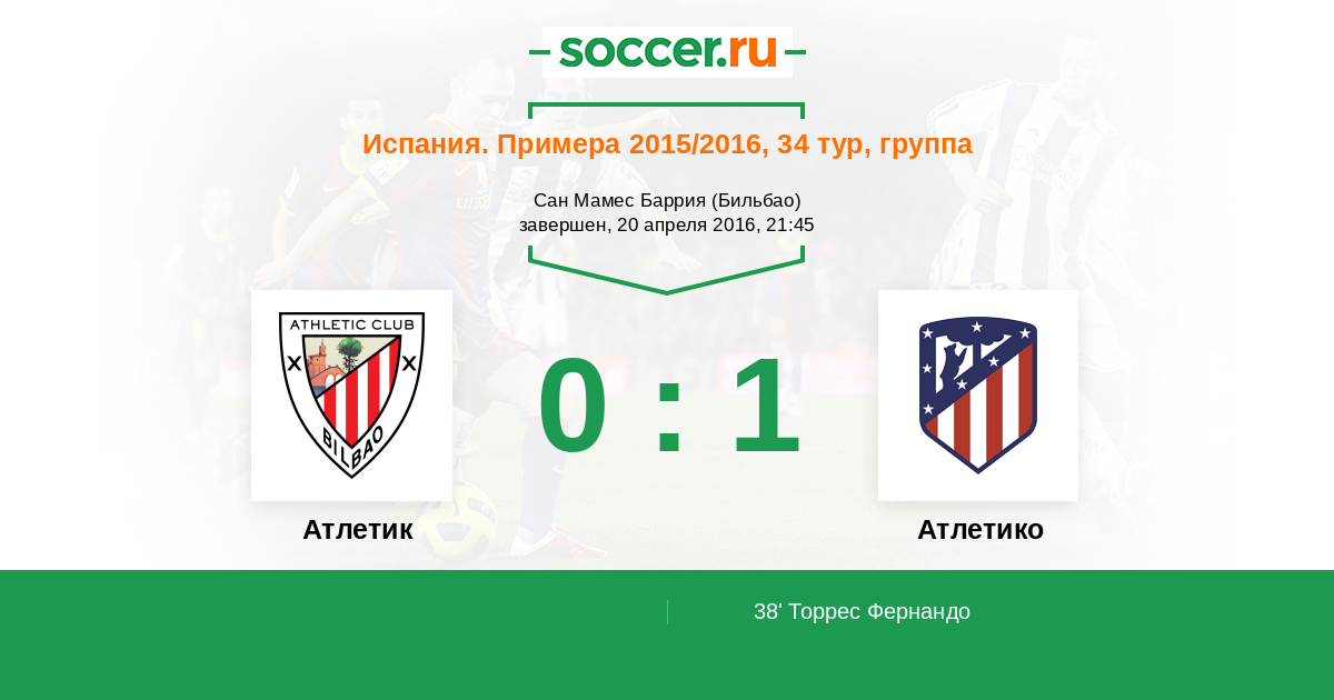Атлетик - Атлетико: обзор матча 20 апреля 2016