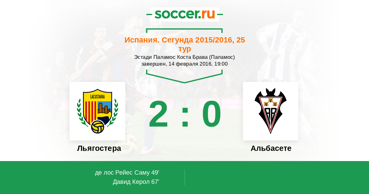 Льягостера - Альбасете: обзор матча 14 февраля 2016