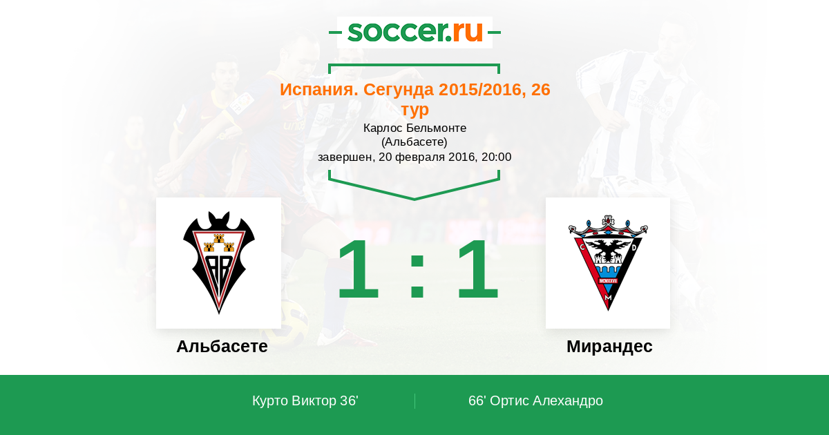 Альбасете - Мирандес: обзор матча 20 февраля 2016