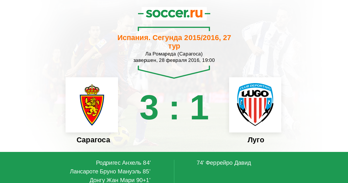 Сарагоса - Луго: обзор матча 28 февраля 2016