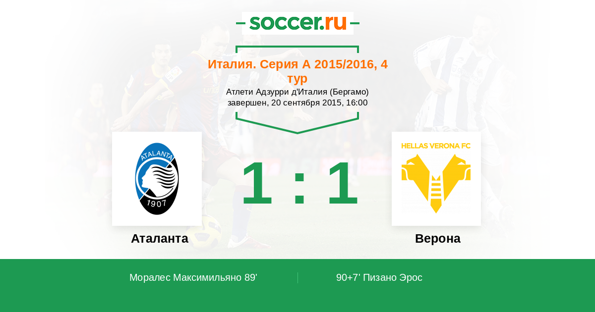 Аталанта - Верона: обзор матча 20 сентября 2015