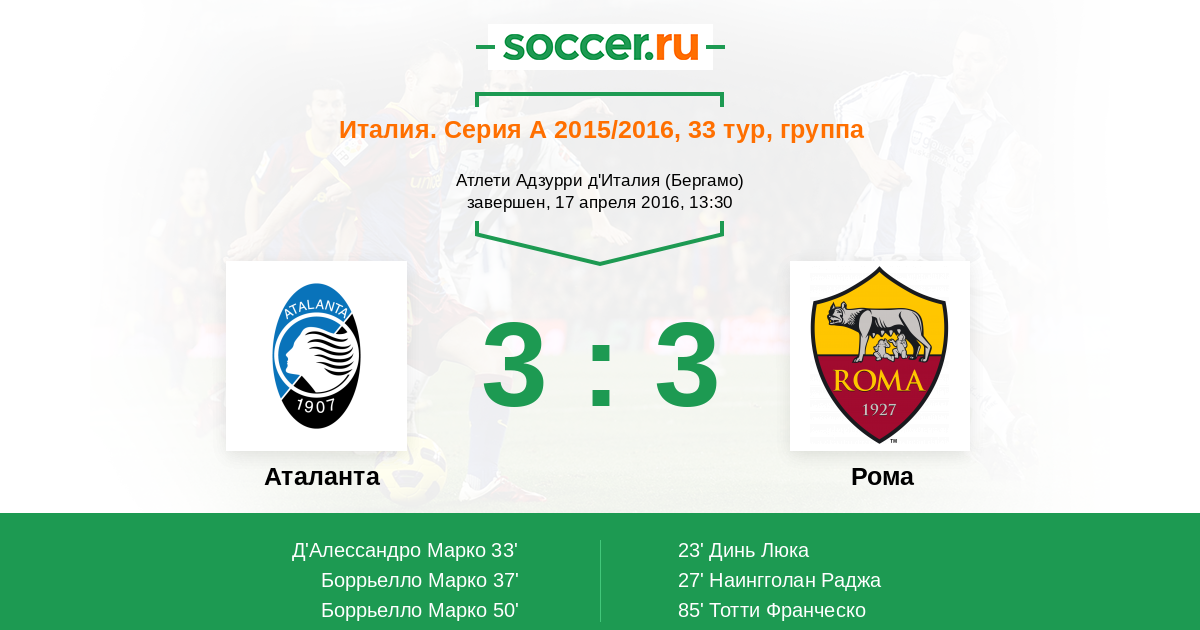 Аталанта - Рома: обзор матча 17 апреля 2016