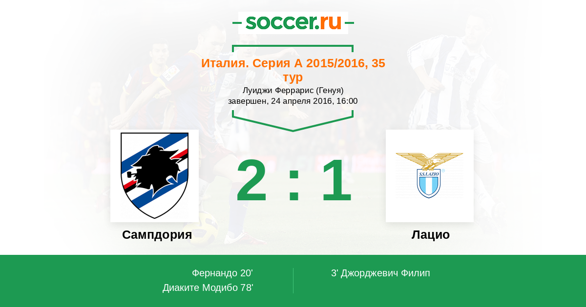 Сампдория - Лацио: обзор матча 24 апреля 2016