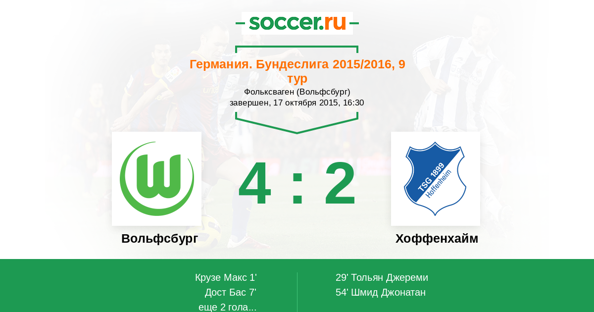 Вольфсбург - Хоффенхайм: обзор матча 17 октября 2015