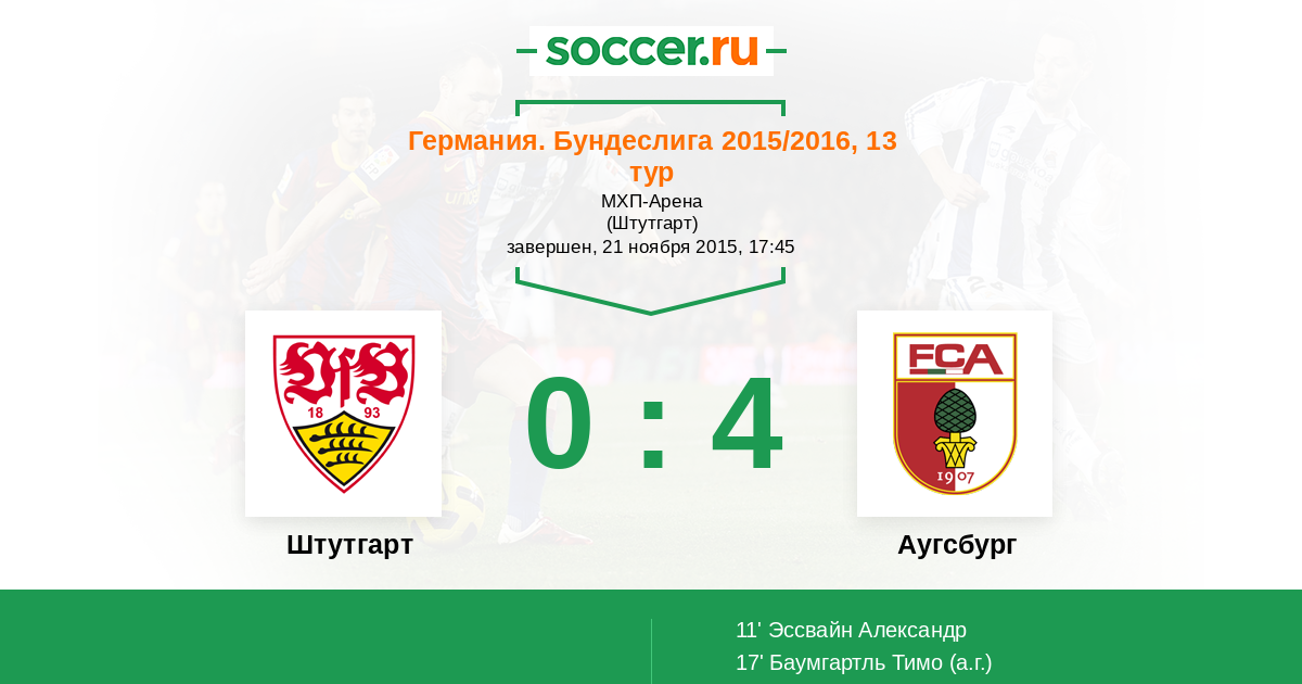Штутгарт - Аугсбург: обзор матча 21 ноября 2015