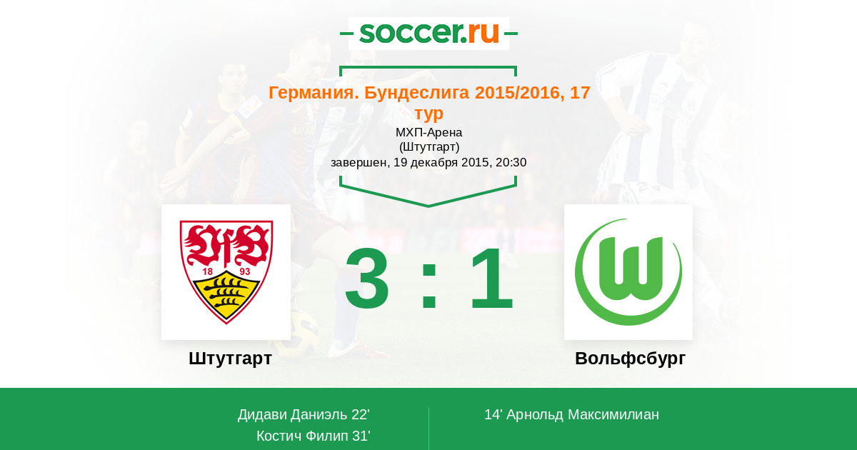 Штутгарт - Вольфсбург: обзор матча 19 декабря 2015