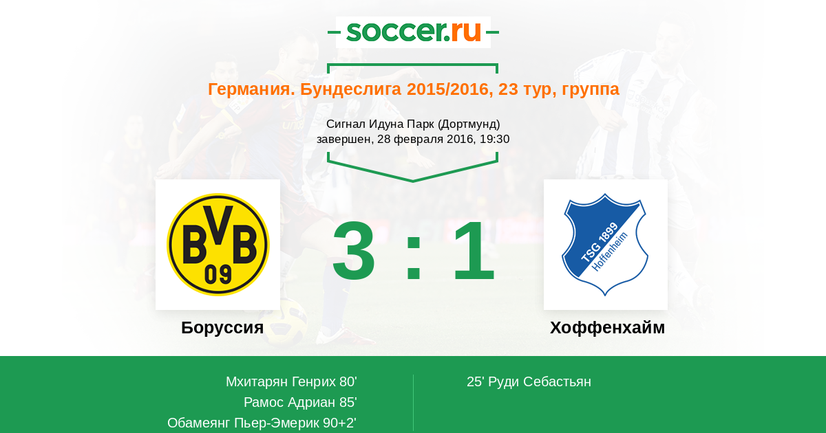 Боруссия - Хоффенхайм: обзор матча 28 февраля 2016