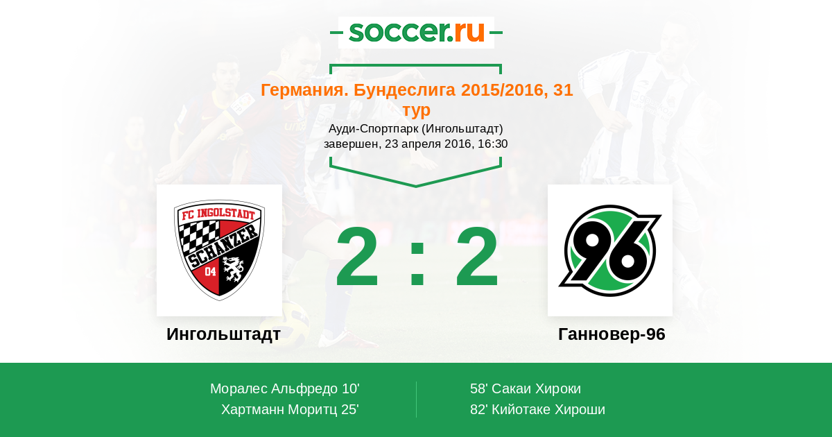 Ингольштадт - Ганновер-96: обзор матча 23 апреля 2016