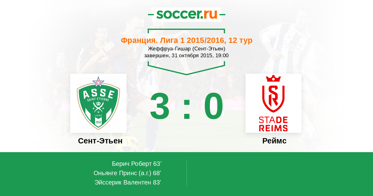 Сент-Этьен - Реймс: обзор матча 31 октября 2015
