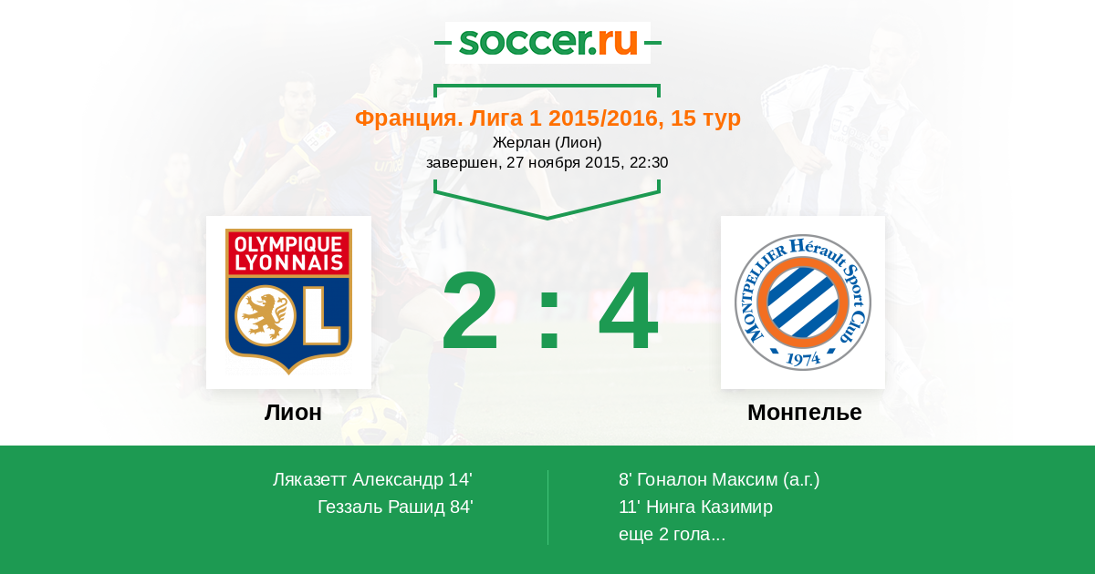 Лион - Монпелье: обзор матча 27 ноября 2015