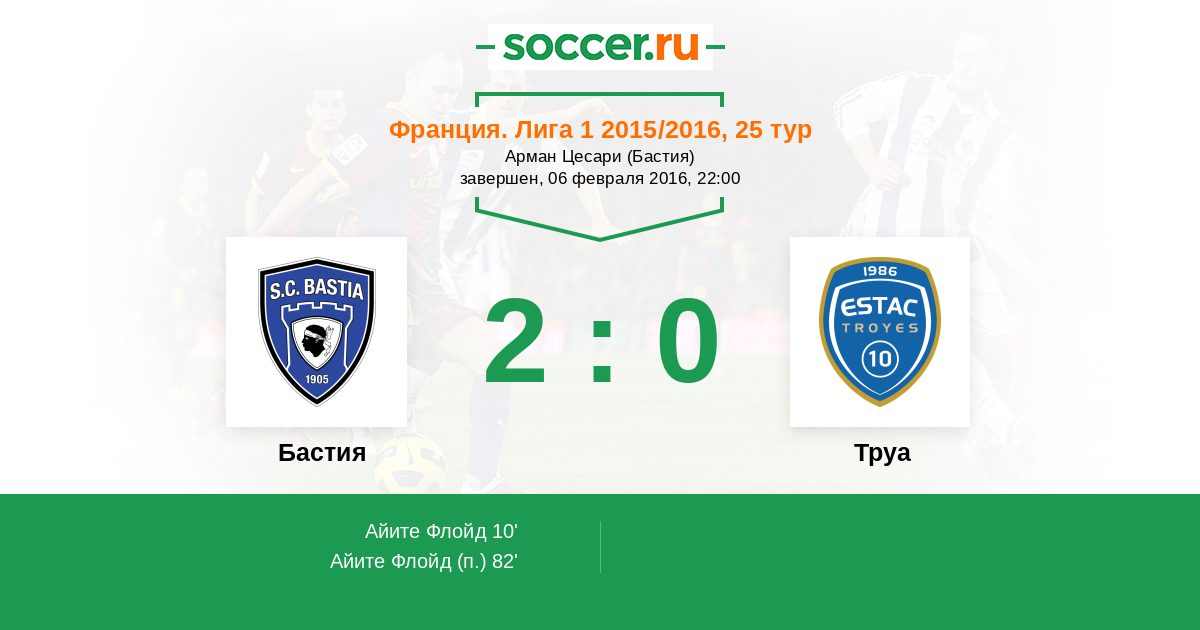 Бастия - Труа: обзор матча 6 февраля 2016