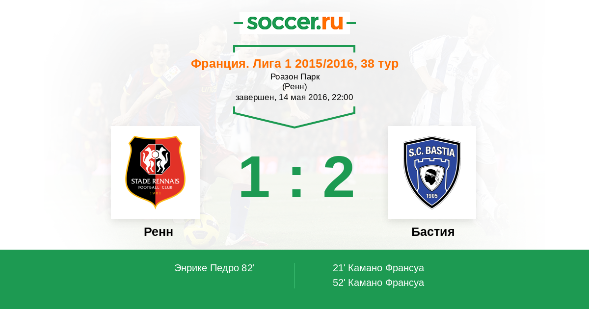 Ренн - Бастия: обзор матча 14 мая 2016